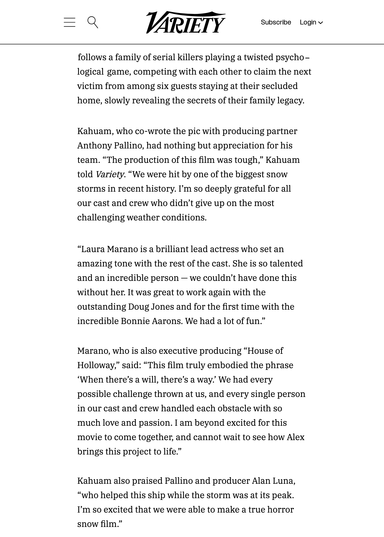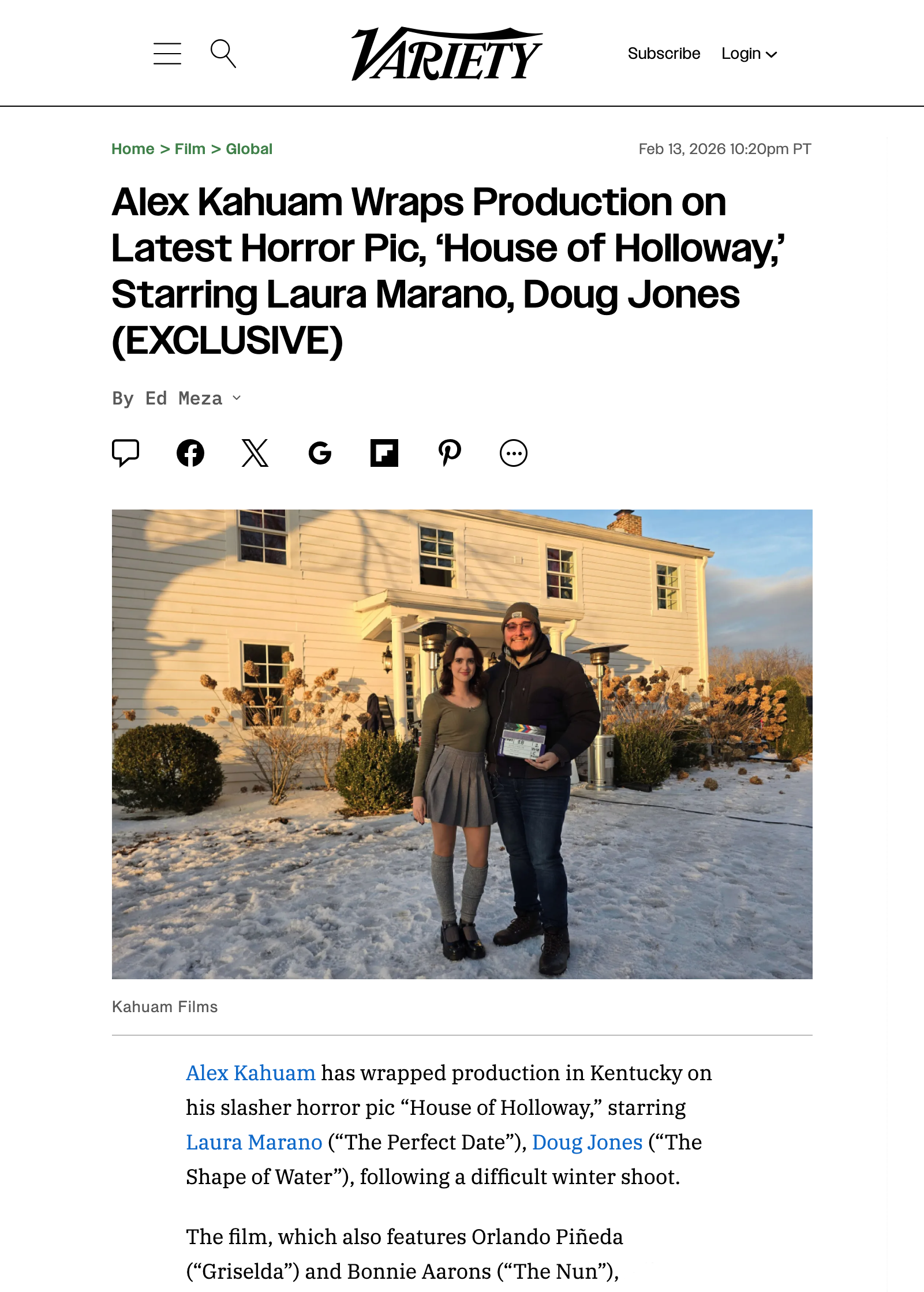 In Feb 2026 Kahuam wrapped his new upcoming slasher horror film "House Of Holloway , starring: Laura Marano (The Perfect Date), Doug Jones (The Shape Of Water), Bonnie Aarons (The Nun), Orlando Piñeda (Griselda).